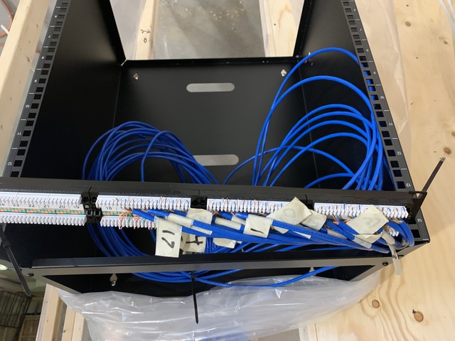 I did all 17 cables. (13 to 17 today). It took me about an hour to do them. They all test OK. My dad will be buying some more Cat6e tomorrow and we will add an extra 5. I like the Cat6e that does not have the plastic "cross" separating the pairs. Its pairs are twisted more tightly than the one with the "cross". When I use my cutter on a cable that has the "cross", it also cuts into the wires because they are pushed outwards. The Cat6e I like does not have that problem. I put a plastic sheet over the rackmount so the dust from the workers does not get into the plugs and connections.