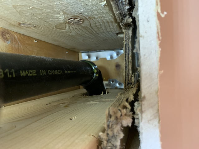 Me and my dad spent three hours hooking up the supply and drainage of the second story bathtub. For the drain, we initially thought of doing it all in ABS. But it was getting complicated and hard because of 90°s we have to add before the P-trap. The drain of the tub is not over the pipe we left in the floor when the bathroom was being done. And it is above a beam. Then I remembered that the tub came with a flexible drain. Fortunately, not only did my dad not throw it away, but was also able to easily find it and also had the fitting to go from it to the ABS P-trap. This made the installation way simpler for us. We lifted the tub, screwed the flexible drain with teflon tape, lowered the tub and then we glued the ABS P-trap. Hooking up the supply lines was hard. The flexible pipes were very rigid and hard to bend to align them with the screw fitting. Then, my dad wanted to add a support so the P-trap is not touching the drywall. While he was trying to attach it, the drain came apart further downstream ! It was an east fix, just glue the join that was not glued.