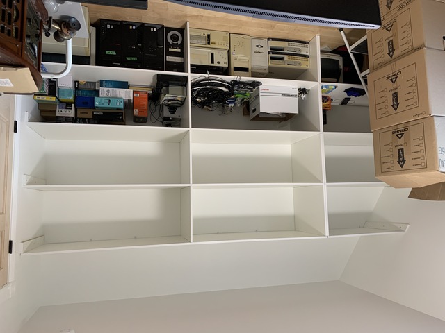 Me and my dad just finished the shelves in my office. I have a lot of boxes and I want them gone. I will start putting things in the upper shelves tomorrow.