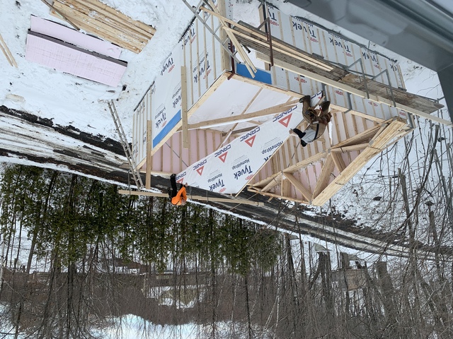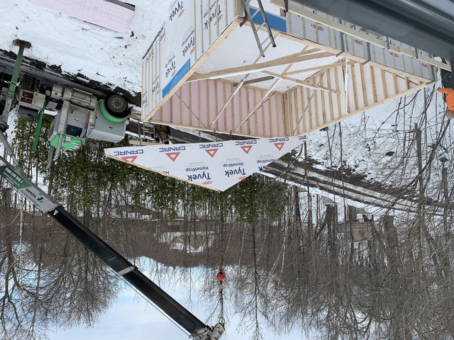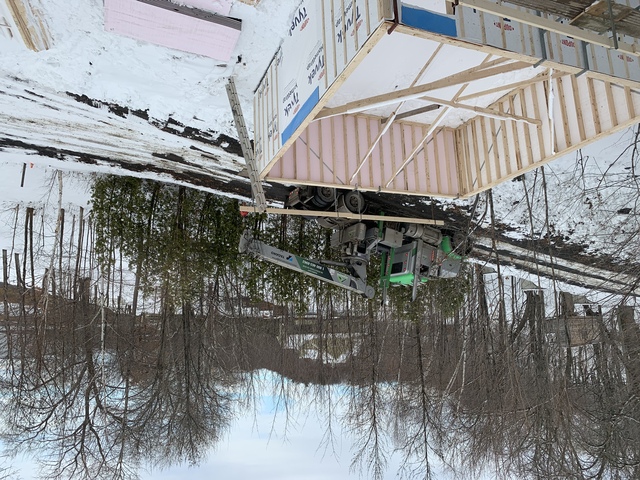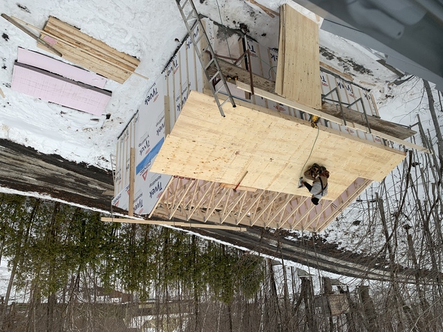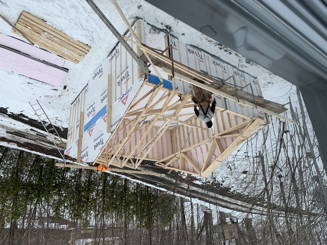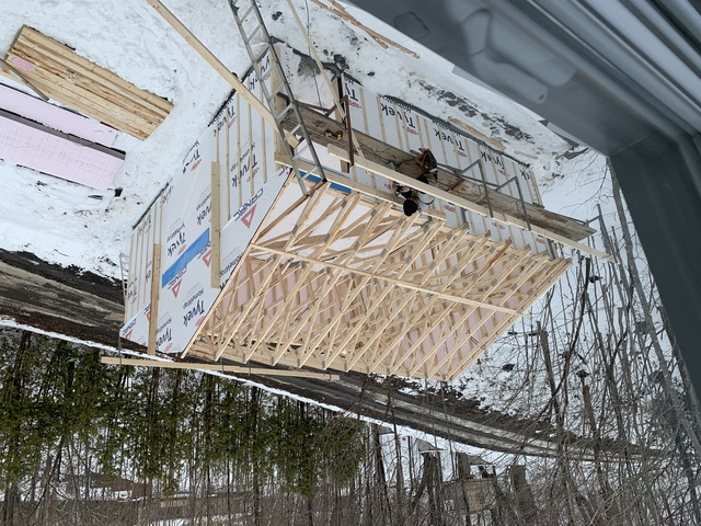Today, the trusses were installed on the large shed and half of the roof was plywooded. They should finish the plywood tomorrow. We will then move the Starlink antenna on the fascia.