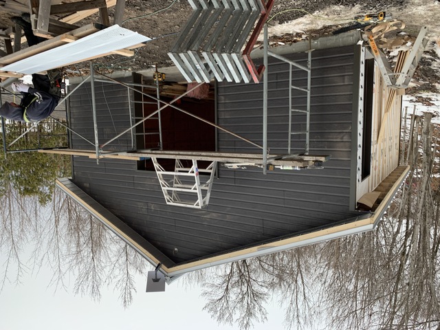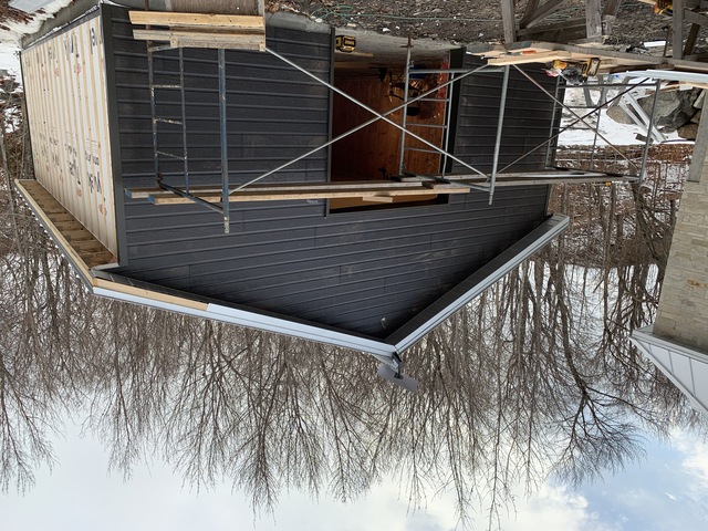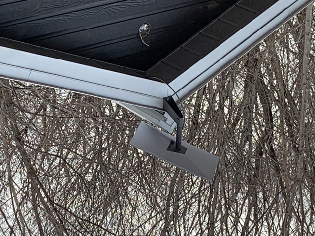Today, the contractors finished installing the front fascia and move the Starlink antenna onto it. There is about an inch between the antenna and the peak of the roof. Before and after.