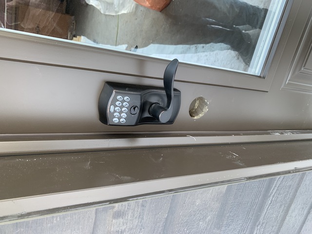 Today, me and my dad installed a locking door handle for the large shed's side door.